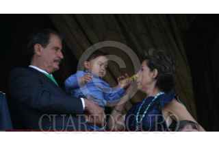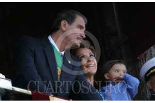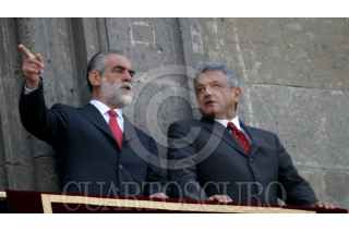 MEXICO, DF 16SEPTIEMBRE2004.- El senador Diego Fernández de Cevallos y el jefe de la ciudad de México Andrés Manuel López Obrador observan el desfile militar que conmemora e inicio de la guerra de independencia. FOTO: Nelly Salas/CUARTOSCURO.COM