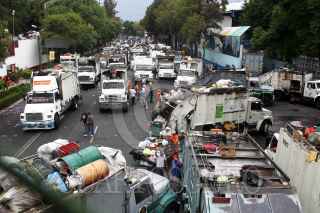 MÉXICO, D.F., 23JUNIO2011- Trabajadores de limpia de la Ciudad de México, continuaron con sus bloqueos a las afueras del Centro de Transferencia, ubicado en la avenida La Viga y el Eje 3 Sur debido a que no quisieron recibir los contenedores si no se encontraban debidamente separados en orgánicos e inorgánicos. FOTO: SAÚL LÓPEZ/CUARTOSCURO.COM