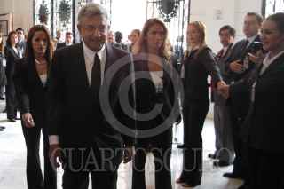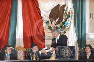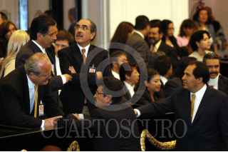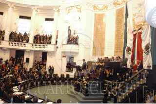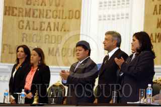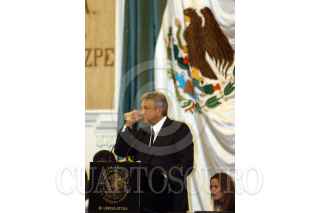 MEXICO, DF 17SEPTIEMBRE2004.- Andrés Manuel López Obrador, jefe de gobierno de la ciuad de México hace una pausa para tomar un vaso de agua durante la lectura de su cuarto informe de gobierno. FOTO: Germán Romero/CUARTOSCURO.COM