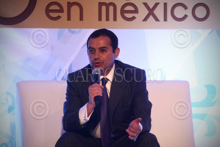 PUEBLA, PUEBLA, 23JUNIO2011.- Rafael Moreno Valle Rosas, gobernador de Puebla, junto al titular de la SHCP, Luis Ernesto Cordero y el presidente del consejo consultivo de la CIRT, Rafael Borbón Ramos, posan con el reconocimiento que le otorgaron al secretario de hacienda durante su ponencia en la 79 convención nacional de la CIRT en Puebla. FOTO: FRANCISCO GUASCO/CUARTOSCURO.COM