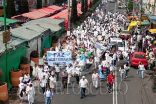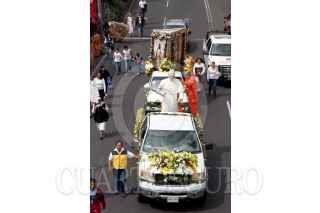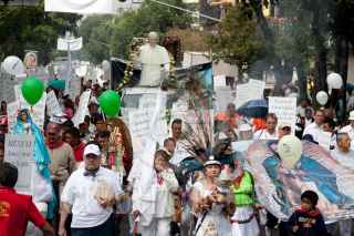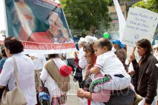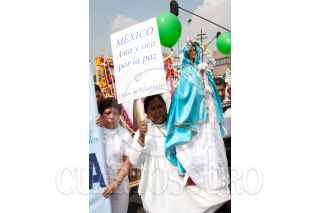 MÉXICO, D.F., 25JUNIO2011.- Cientos de católicos protagonizaron la "Peregrinación por la Paz", que partió de la ex-glorieta de Peralvillo a la Basílica de Guadalupe. Los fieles llevaron una figura del beato Juan Pablo Segundo y el Cardenal Norbeto Rivera oficio una misa para la ocasión. FOTO: MOISÉS PABLO/CUARTOSCURO.COM