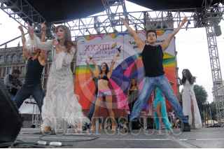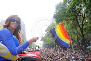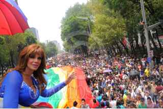 MÉXICO, D.F., 25JUNIO2011.- Lucía Méndez, actriz; recibió la banda de embajadora de la XXXIII Marcha del Orgullo Gay que se realizó ante la asistencia de miles de personas de la comunidad Lésbico, Gay, Bisexual, Travesti, Transexual, Transgénero e Intersexual (LGBTTTI) que se desarrollo del Ángel de la Independencia al Zócalo capitalino. FOTO: FRANCISCO RODRÍGUEZ/CUARTOSCURO.COM