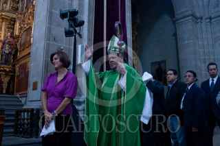 MÉXICO, D.F., 26JUNIO2011.- El cardenal Norberto Rivera entregó los reconocimientos a los ganadores del concurso de fotografía "Juan Pablo II, el Papa con corazón mexicano", al termino de la misa dominical en la Catedral Metropolitana de la ciudad de México. FOTO: ISAAC ESQUIVEL/CUARTOSCURO.COM