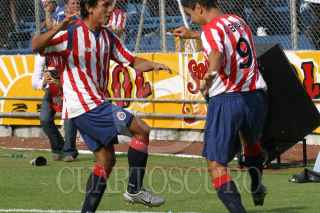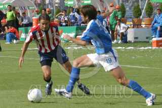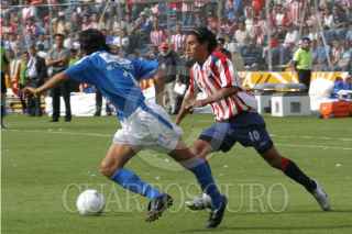 MEXICO, D. F. 18SEPTIEMBRE2004.- Marco Garcés del Cruz Azul y Ramón Morales se disputan un balón durante su encuentro en el estadio Azul, el marcador final 4-2 en favor de la chivas. FOTO: Nelly Salas/CUARTOSCURO.COM