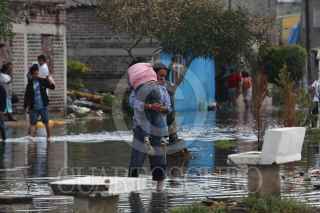 ECATEPEC, ESTADO DE MÉXICO, 27JUNIO2011.- Habitantes de la colonia Prizo Uno y Nueva Aragón en Ecatepec, se vieron afectado tras la inundación que provocó el Dren General del Valle de México tras la fuertes lluvias que azotaron la región durante las ultimas horas. El canal de aguas negras también inundo ambos sentidos del Circuito Exterior Mexiquense a la altura del kilómetro 47. FOTO: SAÚL LÓPEZ/CUARTOSCURO.COM