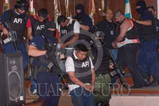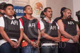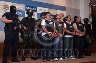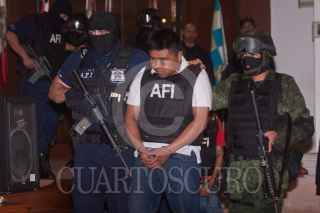 MÉXICO, D.F., 30JUNIO2011.- Abraham BArrios Caporal, alias Erasmo, fue presentado en las instalaciones de la SIEDO, junto con Jhonny Enriquez Carmona "El Guiler", Luis Cabrera Velázquez "El Ronny" y Ramón Evangelista Martínez "El Cangrejo", quienes presuntamente son integrantes de la organización delictiva Los Zetas. Barrios Caporal es presunto autor material de las ejecuciones en San Fernando, Tamaulipas, ocurridas en agosto del año pasado. FOTO: ISAAC ESQUIVEL/CUARTOSCURO.COM