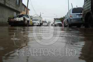 NEZAHUALCÓYOTL, ESTADO DE MÉXICO, 30JUNIO2011.- Debido a la constante lluvia que cae sobre el centro del país el canal Río de los Remedios a la altura de la colonia El Sol se ah desbordado lo que ha provocado una leve inundación de hasta 10 cm de altura, la cual ah provocado la movilización de los cuerpos de seguridad de este municipio. FOTO: LUIS CARBAYO/CUARTOSCURO.COM