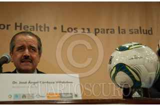 MÉXICO, D.F. 01JULIO2011.- Después de la conferencia de prensa por parte de la Federación Mexicana de Fútbol, La Secretaria de Salud y la FIFA, en donde presentaron el programa para la prevención de la salud en los jóvenes a través del fútbol; Decio de María, Secretario General de la FMF, es cuestionado por los medios de comunicación sobre los nombres de los 4 jugadores implicados con una alta concentración de clembuterol, seleccionados que se sumarían a los 5 ya conocidos. Informó que no se revelaran los nombres de los jugadores, porque los niveles eran demasiado bajos para considerarse doping positivo. FOTO: VLADIMIR VALTIERRA/CUARTOSCURO.COM
