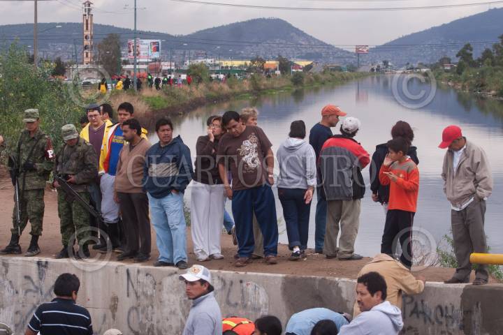 ECATEPEC, ESTADO DE MÉXICO, 01JULIO2011.- Vecinos que resultaron afectados por las lluvias del día de ayer que provocaron el desbordamiento del Río de los Remedios, se manifestaron sobre avenida Central por la falta de ayuda del gobierno local y federal. FOTO: ISAAC ESQUIVEL/CUARTOSCURO.COM