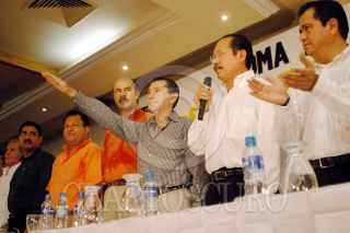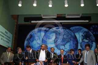 México, D.F. 20 SEPTIEMBRE 2004.- Ceremonia de inauguración de la XXIX Convención Nacional ordanaria democrática de telefonistas, encabezada por Carlos Abascal, secretario del Trabajo y Previsión Social y el líder sindical Francisco Hernández Juárez. FOTO: Sandra Perdomo/CUARTOSCURO.COM