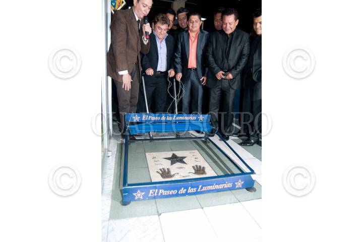 MÉXICO, D.F., 01JULIO2011.- El compositor y músico, José Manuel Zamacona y los Yonics, asistieron a Plaza Galerias la tarde de hoy para develar las huellas de Bronce de dicha agrupación. FOTO:FRANCISCO RODRÍGUEZ/CUARTOSCURO.COM