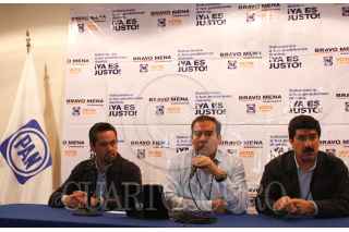 NAUCALPAN, ESTADO DE MÉXICO, 03JULIO2011.- Octavio German Olviraes, presidente del PAN en el estado, el diputado Javier Corral, presidente del CEN , y Alfredo Rivadeneyra, coordinador de campaña; ofrecieron una conferencia de prensa en donde informaron que había un registro del 75% de apertura de casillas, lo que dificultad aun más la participación ciudadana. FOTO: ADRIANA ALVAREZ/CUARTOSCURO.COM