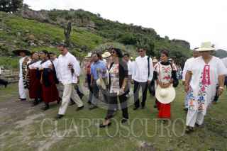 TLACOLULA DE MATAMOROS, OAXACA, 03JULIO2011.- La Alta Comisionada de Derechos Humanos de Naciones Unidas, Navanethem Pillay, realizó un recorrido por la zona arqueológica de Yagul, en donde estuvo acompañada del gobernador Gabino Cué y el padre Solalinde, defensor de los migrantes. La Alta Comisionada sostendrá una serie de reuniones con diferentes sectores de los que se nutrirá de las costumbres y formas de gobierno de los pueblos indígenas. FOTO: CARLOS SALINAS/CUARTOSCURO.COM