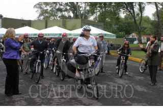MÉXICO, D.F., 04JULIO2011.- Martha Delgado Peralta, secretaria de Medio Ambiente del Distrito Federal, entregó certificados a 70 trabajadores de Scotianbank que concluyeron el primer curso "En Bici al Trabajo". FOTO: CUARTOSCURO.COM