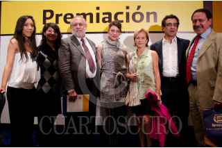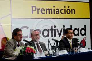 MÉXICO, D.F., 05JULIO2011.-Sealtiel Alatriste, director de Difusión Cultural de la UNAM, ofrecio conferencia de prensa para anunciar los ganadores de "Creatividad para México 2011", iniciativa desarrollada por la secretaría de Turismo y la UNAM para desarrollar campañas de promoción para fortalecer los destinos turísticos del país. En la imagen posa con los ganadores. FOTO: MISAEL VALTIERRA/CUARTOSCURO.COM