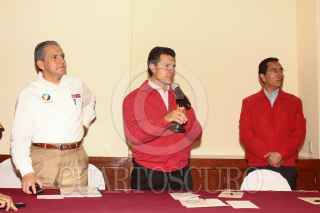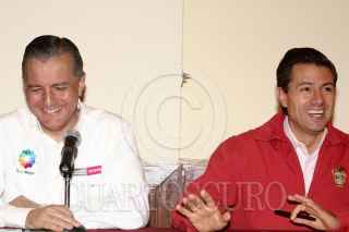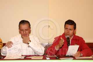 ECATEPEC, ESTADO DE MÉXICO, 05JULIO2011.- Enrique Peña Nieto, gobernador del Estado de México se reunió con Heriberto Felix Guerra , secretario de Desarrollo Social anunciaron que en el transcurso de esta semana entregaran alrededor de 200 millones de pesos a las familias afectadas en el municipio Ecatepec luego del desbordamiento del Río de los Remedios. Durante la conferencia los acompaño el edil de Ecatepec Indalecio Ríos Velázquez. FOTO: SAÚL LÓPEZCUARTOSCURO.COM