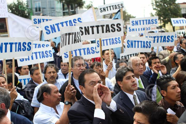 MÉXICO, D.F., 06JULIO2011.- Fernando Perfecto, lider de la Asociación Sindical de Pilotos de Aviación (ASPA); Lizzet Clavel, lider de la Asociación Sindical de Sobrecargos de Aviación (ASSA); Miguel Ángel Yúdico Colín, lider del Sindicato Nacional de Trabajadores de Transformación, Transporte y Aviación (SNTTTASS) durante una protesta de Trabajadores de Mexicana de Aviación que realizaron a las afueras de la Secretaria de Comunicaciones y Transportes para exigir el regreso de Mexicana y la reubicación de sus puestos de trabajo. FOTO: RODOLFO ANGULO/CUARTOSCURO.COM