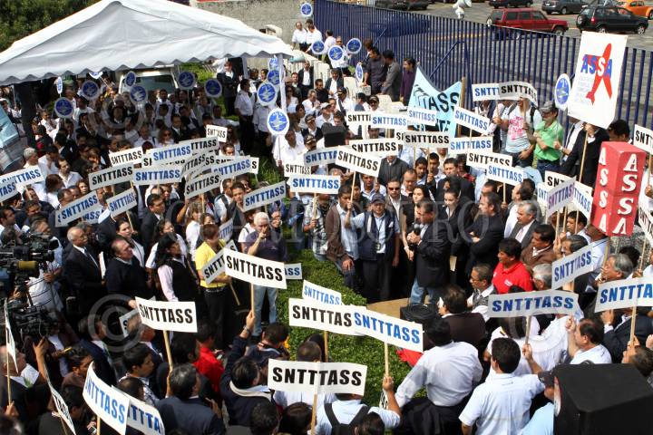 MÉXICO, D.F., 06JULIO2011.- Fernando Perfecto, lider de la Asociación Sindical de Pilotos de Aviación (ASPA); Lizzet Clavel, lider de la Asociación Sindical de Sobrecargos de Aviación (ASSA); Miguel Ángel Yúdico Colín, lider del Sindicato Nacional de Trabajadores de Transformación, Transporte y Aviación (SNTTTASS) durante una protesta de Trabajadores de Mexicana de Aviación que realizaron a las afueras de la Secretaria de Comunicaciones y Transportes para exigir el regreso de Mexicana y la reubicación de sus puestos de trabajo. FOTO: RODOLFO ANGULO/CUARTOSCURO.COM