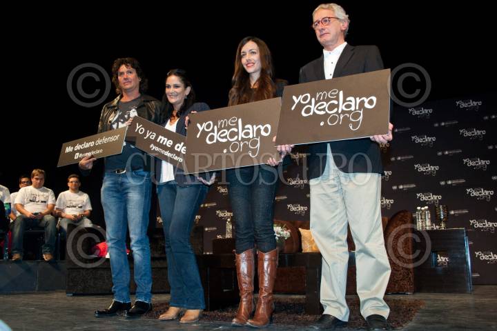 MÉXICO, D.F., 06JULIO2011.- Personas que acudieron a la presentación de la campaña "Yo me declaro", se tomaron la foto en el Teatro Metropolitan. FOTO: ISAAC ESQUIVEL/CUARTOSCURO.COM