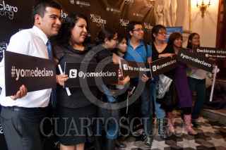 MÉXICO, D.F., 06JULIO2011.- Personas que acudieron a la presentación de la campaña "Yo me declaro", se tomaron la foto en el Teatro Metropolitan. FOTO: ISAAC ESQUIVEL/CUARTOSCURO.COM