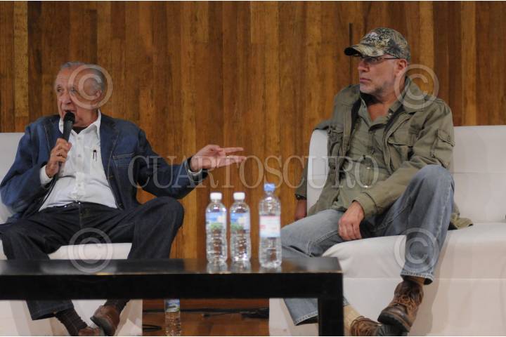 MÉXICO,D.F.,8 JULIO2011.- El guionista, Guillermo Arriaga y el escritor, Vicente Leñero acudieron el primer encuentro Iberoamericano de escritores cinematográfico, FOTO: FRANCISCO RODRÍGUEZ/CUARTOSCURO.COM