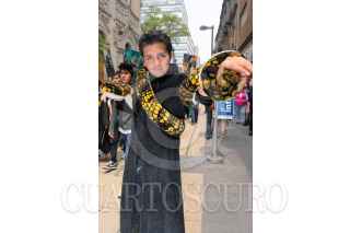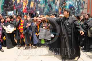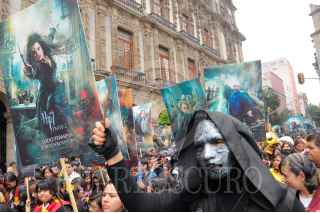 MÉXICO, D.F., 09JULIO2011.- Fanáticos de la saga literaria y cinematográfica, Harry Potter, de la inglesa, J.K. Rowling, marcharon caracterizados como hechizeros, el día de hoy del Monumento a la Revolución hasta el Zócalo capitalino, en vísperas del estreno de la última película el 15 de Julio a nivel nacional. FOTO: FRANCISCO RODRÍGUEZ/CUARTOSCURO.COM