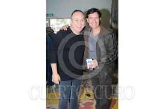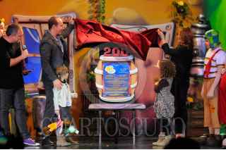 MÉXICO, D.F, 10JULIO2011.- El cantante, Erik Rubín, la conductora de Televisión, Andrea Legarreta y sus hijas, Mia Rubin Legarreta y Nina Rubín Legarreta, fueron los padrinos de las 200 representaciones de "El chavo animado" que se presentó en Teatro Blanquita. FOTO: FRANCISCO RODRÍGUEZ/CUARTOSCURO.COM
