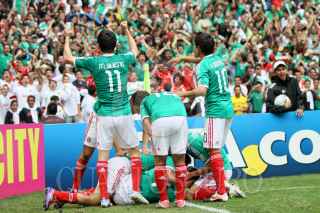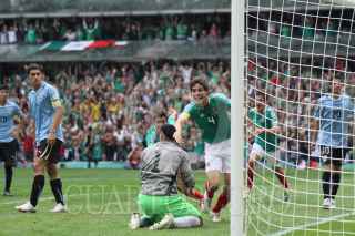MÉXICO, D.F., 10JULIO2011.- Con gol de Antonio Briseño, el equipo mexicano esta doblegando a su similar de Uruguay, en el partido de la final de fútbol Copa del Mundo Sub 17, en el Estadio Azteca. FOTO: MOISÉS PABLO/CUARTOSCURO.COM