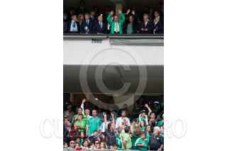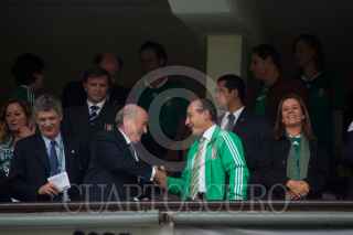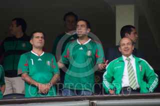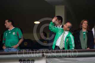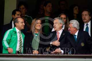 MÉXICO, D.F., 10JULIO2011.- Felipe Calderón Hinojosa, Presidente de los Estados Unidos Mexicanos, su esposa Margarita Zavala, Justino Compeán, presidente de la Federación Mexicana de Fútbol, previo al juego entre la selección mexicana, la cual ganó 2-0 a su similar uruguaya, en el Estado Azteca. FOTO: DEMIÁN CHÁVEZ/CUARTOSCURO.COM
