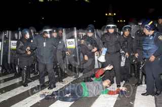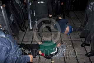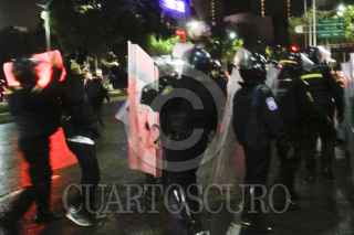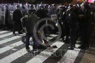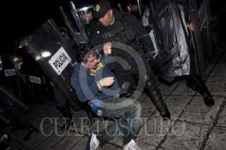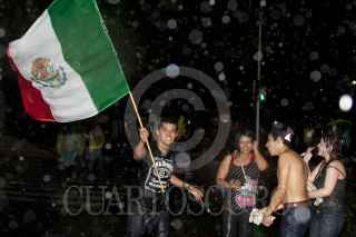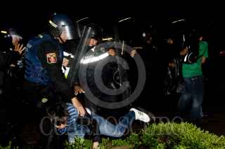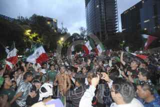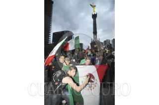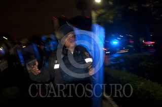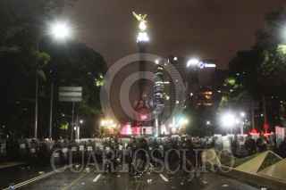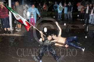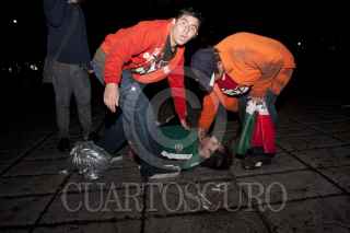 MÉXICO, D.F., 10JULIO2011.- Granaderos desalojaron a golpes y empujones a los aficionados que se dieron cita en el Ángel de la Independencia para celebrar el triunfo de la selección mexicana de futbol Sub 17 quienes obtuvieron la Copa Mundial al vencer a su similar de Uruguay dos goles a cero en el Estadio Azteca. FOTO: GUILLERMO PEREA /CUARTOSCURO.COM
