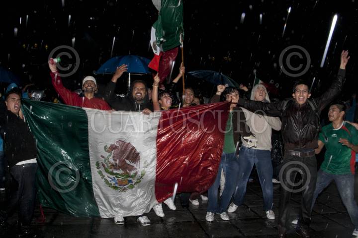 MÉXICO, D.F., 10JULIO2011.- Granaderos desalojaron a golpes y empujones a los aficionados que se dieron cita en el Ángel de la Independencia para celebrar el triunfo de la selección mexicana de futbol Sub 17 quienes obtuvieron la Copa Mundial al vencer a su similar de Uruguay dos goles a cero en el Estadio Azteca. FOTO: GUILLERMO PEREA /CUARTOSCURO.COM