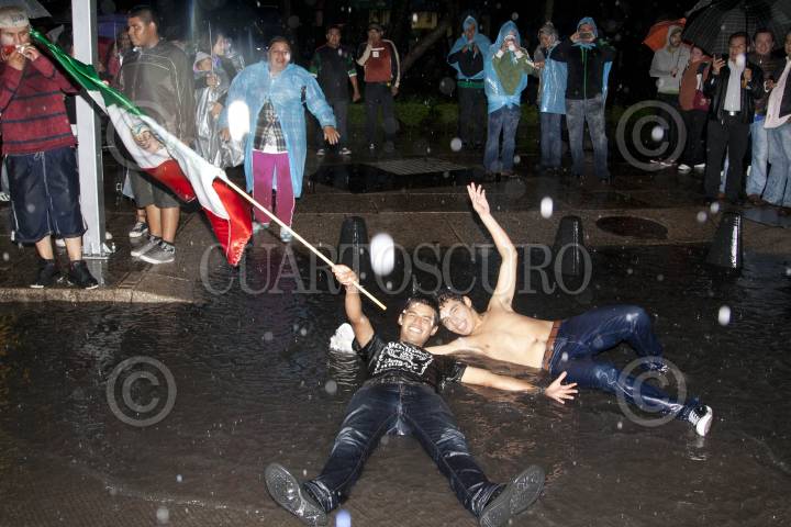 MÉXICO, D.F., 10JULIO2011.- Granaderos desalojaron a golpes y empujones a los aficionados que se dieron cita en el Ángel de la Independencia para celebrar el triunfo de la selección mexicana de futbol Sub 17 quienes obtuvieron la Copa Mundial al vencer a su similar de Uruguay dos goles a cero en el Estadio Azteca. FOTO: GUILLERMO PEREA /CUARTOSCURO.COM