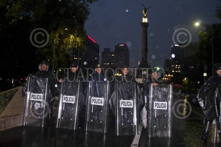 MÉXICO, D.F., 10JULIO2011.- Granaderos desalojaron a golpes y empujones a los aficionados que se dieron cita en el Ángel de la Independencia para celebrar el triunfo de la selección mexicana de futbol Sub 17 quienes obtuvieron la Copa Mundial al vencer a su similar de Uruguay dos goles a cero en el Estadio Azteca. FOTO: GUILLERMO PEREA /CUARTOSCURO.COM