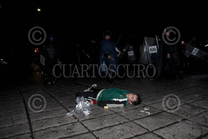 MÉXICO, D.F., 10JULIO2011.- Granaderos desalojaron a golpes y empujones a los aficionados que se dieron cita en el Ángel de la Independencia para celebrar el triunfo de la selección mexicana de futbol Sub 17 quienes obtuvieron la Copa Mundial al vencer a su similar de Uruguay dos goles a cero en el Estadio Azteca. FOTO: GUILLERMO PEREA /CUARTOSCURO.COM