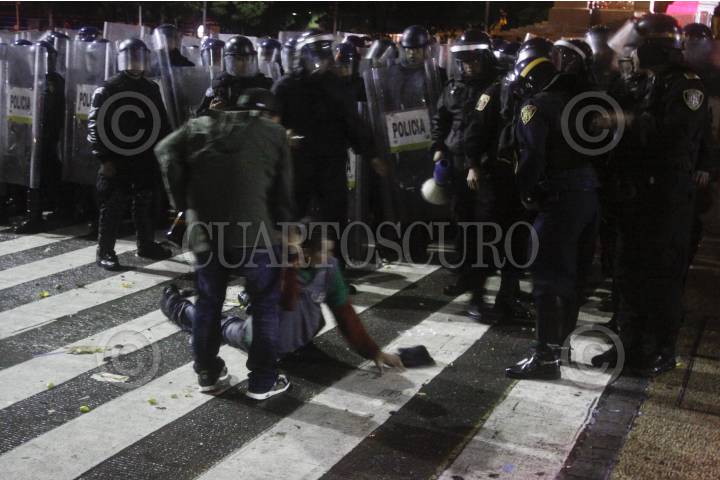 MÉXICO, D.F., 10JULIO2011.- Granaderos desalojaron a golpes y empujones a los aficionados que se dieron cita en el Ángel de la Independencia para celebrar el triunfo de la selección mexicana de futbol Sub 17 quienes obtuvieron la Copa Mundial al vencer a su similar de Uruguay dos goles a cero en el Estadio Azteca. FOTO: GUILLERMO PEREA /CUARTOSCURO.COM