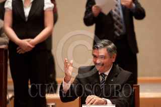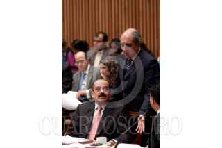 MÉXICO, D.F., 11JULIO2011.- Los representantes legislativos del PRI, Sebastián Lerdo de Tejada, y del PRD, Pablo Gómez, en la sesión general del IFE. FOTO: MOISÉS PABLO/CUARTOSCURO.COM