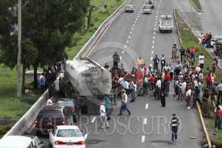 ECATEPEC, ESATDO DE MÉXICO, 11JULIO2011.- Habitantes de las colonias afectadas por el desbordamiento del canal de aguas negras “Rio de los remedios” bloquearon por mas de cuatro horas el cruce de Periférico y Avenida Central como protesta por no haber recibido la ayuda prometida por el gobierno estatal y federal para reparar sus viviendas y enceres domésticos. FOTO: SAÚL LÓPEZ/CUARTOSCURO.COM
