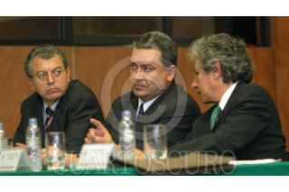 México, D.F. 28 SEPTIEMBRE 2004.- Manuel Camacho Solis, Pablo Alejo López y Adolfo Aguilar Zinser durante el Foro de Reformas al Estado, "Gobernabilidad, y democracia", organizado por la Cámara de Diputados. FOTO: Sandra Perdomo/CUARTOSCURO.COM