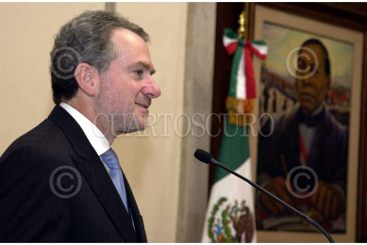 México, D.F. 28 SEPTIEMBRE 2004.- Santiago Creel Miranda, secretario de Gobernación durante su intervención en la firma de convenio de colaboración entre la SEGOB y el Sinsicato Único de Trabajadores de la Música en el D.F. Evento realizado en el salón Benito Juárez de dicha secretaría. FOTO: CUARTOSCURO.COM