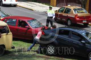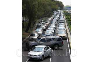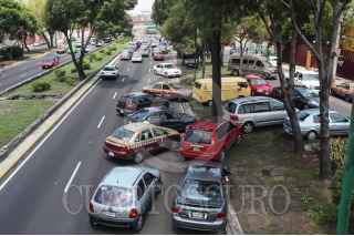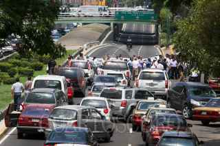 MÉXICO, D.F.,12JULIO2011.- Taxistas bloquearon la circulación de carriles centrales y laterales del viaducto Miguel Alemán al cruce con Francisco del Paso exigiendo a las autoridades de la SSP-DF y Setravi, liberen unidades que fueron remitidas al corralón y cesen los operativos en contra los choferes. FOTO: SAÚL LÓPEZ/CUARTOSCURO.COM