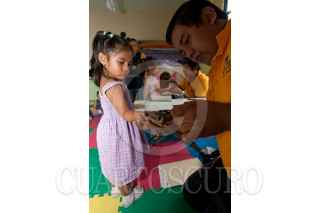 VILLAHERMOSA, TABASCO, 12JULIO2011.- La fundación Conóceme A.C. que dirige Angélica María Pardo Rodríguez, inició con el proceso periciales en huellas dactilares en menores de edad que cursan la etapa preescolar y en estancias infantiles tabasqueñas. Dicho mecanismo es de vital importancia que sea aplicado a cada infante del estado, país y del globo terráqueo debido a que los niños podrían perderse o encontrarse en calidad de desaparecidos; y con esta aplicación donde estampan cada huella de sus manos y pies pueden ser fácilmente reconocidos. En la imagen pequeños no mayores de cuatro años en la estancia infantil "Gotitas de Amor" que se ubica en la colonia Tamulte de las Barrancas son ayudados por sus mentoras y padres a que se les sea aplicado debidamente el cotejo de sus huellas. FOTO: MARCO POLO GUZMÁN HERNÁNDEZ/CUARTOSCURO.COM