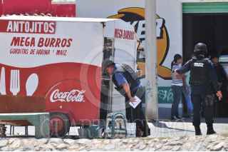 CIUDAD JUÁREZ, CHIHUAHUA, 12JULIO2011.- Dos personas del sexo masculino fueron asesinadas a balazos en una desponchadora, entre ellos un menor de 12 años. El negocio se ubica en el fraccionamiento el Campanario, ubicado en las calles de Justo, Santa Berenice y Paseo de los Compositores. Los cuerpos quedaron tirados en el negocio, según trascendió en el lugar de los hechos fueron varios los sujetos que llegaron hasta la negociación para después disparar en contra de sus víctimas. El menor de edad trato de escapar de los sicarios por lo que salió corriendo del local, sin embargo fue alcanzado metros adelante para finalmente caer muerto dentro de puesto de burritos. FOTO: NACHO RUÍZ/CUARTOSCURO.COM