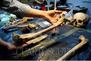 BARRIOZABAL, CHIAPAS, 14JULIO2011.- Investigadores del INAH, realizaron el hallazgo de tres restos óseos de una probable familia prehispánica en el municipio de Berriozábal, compuesta por dos adultos y un bebé. FOTO: INAH/CUARTOSCURO.COM
