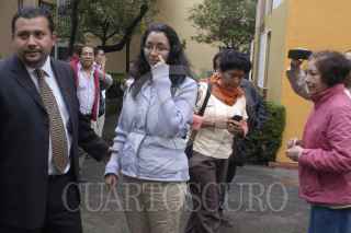 MÉXICO, D.F., 14JULIO2011.- “No voy a pedir una disculpa pública si no que agarren a los asesinos”, dijo Mariel Solís, al arribar a su casa en Copilco, una vez que por falta de pruebas quedo absuelta. “La mujer del video, tiene más pecho, los brazos mas cortos, no se parece en nada a mi, no soy yo”, declaro ante los medios de comunicación en compañía de amigos y familiares. FOTO: LUIS CARBAYO/CUARTOSCURO.COM