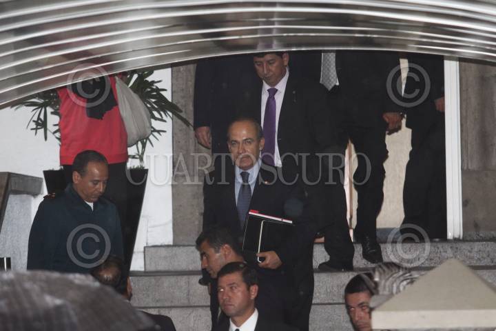 MÉXICO, D.F., 14JULIO2011.- El diputado del PRI, Francisco Rojas y Francisco Blake Mora, secretario de Gobernación a su salida después de una reunión en un restaurante en la colonia Polanco. FOTO: RODOLFO ANGULO/CUARTOSCURO.COM