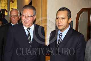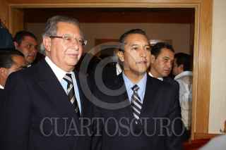 MÉXICO, D.F., 14JULIO2011.- El diputado del PRI, Francisco Rojas y Francisco Blake Mora, secretario de Gobernación a su salida después de una reunión en un restaurante en la colonia Polanco. FOTO: RODOLFO ANGULO/CUARTOSCURO.COM