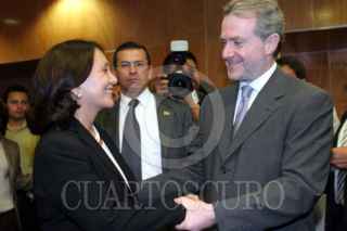 México, D.F., 29SEPTIEMBRE2004.- Santiago Creel, secretario de Gobernación y Amalia García, gobernadora de Zacatecas, durante el foro "Gobernabilidad Democrática, Qué Reforma", organizado por la Cámara de Diputados. FOTO: Moisés Pablo/CUARTOSCURO.COM