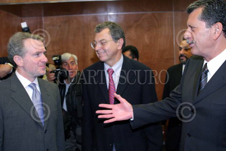 México, D.F., 29SEPTIEMBRE2004.- Santiago Creel, secretario de Gobernación y Amalia García, gobernadora de Zacatecas, durante el foro "Gobernabilidad Democrática, Qué Reforma", organizado por la Cámara de Diputados. FOTO: Moisés Pablo/CUARTOSCURO.COM