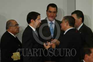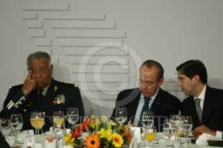 MÉXICO, D.F., 15JULIO2011.- Maricela Morales Ibañez, procuradora General de la República y Genaro Garcia Luna, secretario de Seguridad Pública Federal durante el evento de Toma de Protesta del Consejo Nacional Directivo 2011 - 2012 de la Cámara Nacional del Autotransporte de Pasaje y Turismo que se realizo en el salón Adolfo López Mateos de la residencia oficial de Los Pinos. FOTOS: RODOLFO ANGULO/CUARTOSCURO.COM