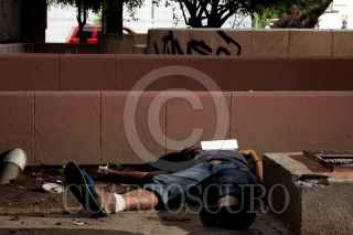 CULIACAN,SINALOA 15julio2011; Un cuerpo aun no identificado fue localizado sin vida sobre la banqueta aun costado del boulevar Aquiles Serdan, la causa de la muerte de la victima fue por una sobredosis de heroína, al lugar acudieron el ministerio publico para dar fé y que el cuerpo fuera trasladado al servicio medico forense. FOTO: RASHIDE FRIAS/CUARTOSCURO.COM